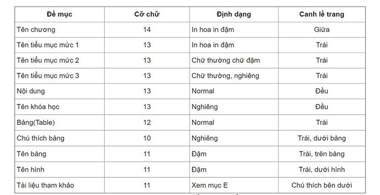Tiêu chí chi tiết về cách trình bày tiểu luận về cỡ chữ, định dạng và căn lề (trên Microsoft Word):